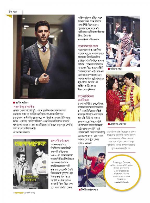 The first and one of its kind "Bangla‟ celebrity magazine, ANANDALOK shares moments that are exclusive & straight out of the lives of celebrities. Their family, social needs as well as individual outlook towards life creates a relatable space in reader’s mind, making them ‘Social Equals.