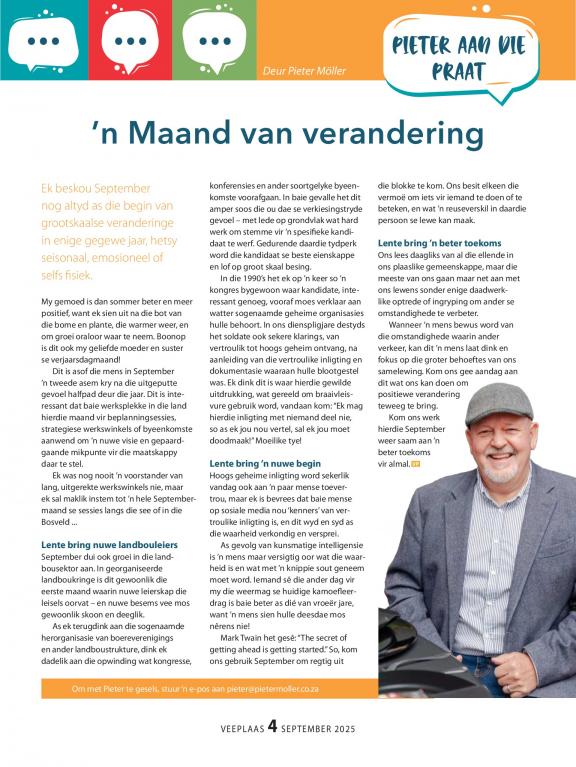 Veeplaas is diè tydskrif vir die veeboer. Veeplaas is 'n veekundige vaktydskrif wat na landbou kyk deur die oë van die veeboer. Die tydskrif fokus op dit wat die veeboer se sak raak en bly weg van politiek. Of jy nou 'n beesboer, skaapboer, bokboer, wolboer, melkboer of wildboer is - ons is die tydskrif vir jou!