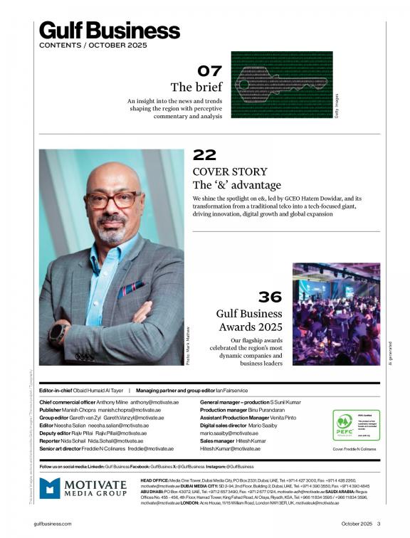 Gulf Business is the region's premier business monthly for decision-makers, corporate leaders and high-ranking business and government executives. This magazine offers readers cutting-edge analysis' of news and views that have a direct bearing on their businesses and work, providing insights into the local and regional business domains.