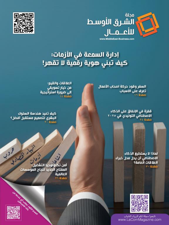 مجلة الشرق الأوسط للأعمال / ميدل ايست بزنس، تقدم إضاءةً على الشرق الأوسط والمنطقة العربية والعالم من زاوية عالم الأعمال، وتزود بمعلومات ومقالات حول القضايا الاقتصادية والاجتماعية والاقتصادية ذات الصلة، كما تسلط المجلة الضوء على فرص الاستثمار. كما تخصص المجلة زوايا ثابتة حول قضايا المساواة بين الجنسين المتعلقة بالأعمال والتمويل الإسلامي واشكاليات الطاقة. تصدر هذه المجلة باللغتين العربية والإنجليزية، وهي الوحيدة في المنطقة التي تصدر بلغتين وبمحتوى مختلف لكل منهما في مجلد واحد. إضافة إلى محتوى مختلف أيضاً للصفحة الإلكترونية وتطبيق المحمول (اندرويد وأي أو أس). تصدر المجلة أيضاً بنشرة الكترونية أسبوعيا توزع إلى الآلاف من المشتركين محلياً وفي المنطقة وعالمياً. للمجلة أيضاً قناة مرئية على اليوتيوب بالتعاون مع بالميديا، حيث يمكنكم مشاهدة مقابلات وتقارير مختلفة. المجلة تتوزع في عشر دول، وهي شريك للعديد من المؤتمرات الهامة في العالم. مجلة ميدل ايست بزنس / الشرق الأوسط للأعمال هي عضو في الشبكة العالمية للإعلام والمجلات FIPP وهي تصدر عن مجموعة أوغاريت للتسويق ومقرها فلسطين ولها مكاتب تمثيلية في كل من دبي، الأردن وقبرص.