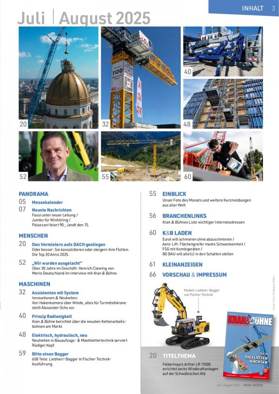 Alle Magazine des Vertikal Verlags bieten fachliche und unabhängige Berichterstattung über die Hebeindustrie mit dem Fokus auf Krane, Arbeitsbühnen, Teleskoplader und Ladekrane.