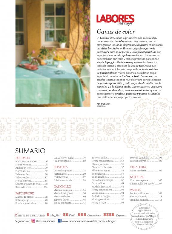 LABORES DEL HOGAR ESPAÑA: La revista especializada en bordado, punto de cruz, patchwork, ganchillo y punto de media, número 1 en España desde 1926. Incluye labores creativas y textiles para decorar tu hogar así como complementos, accesorios, bolsos, jerseys… y cualquier tipo de manualidades creativas y de tendencia, con las explicaciones, gráficos, dibujos y el paso a paso que necesitas para realizarlas en casa. Descubre las últimas tendencias del DIY para todos los niveles con Labores del Hogar y disfruta del placer de crear con tus propias manos.