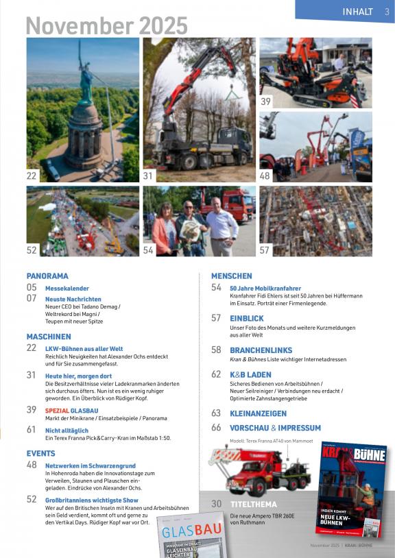 Alle Magazine des Vertikal Verlags bieten fachliche und unabhängige Berichterstattung über die Hebeindustrie mit dem Fokus auf Krane, Arbeitsbühnen, Teleskoplader und Ladekrane.
