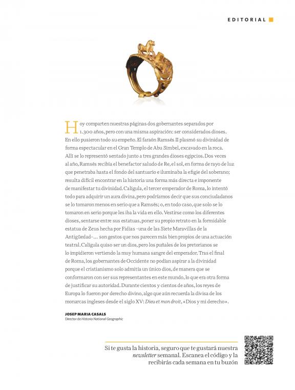 Descubre los episodios más apasionantes de la historia con las últimas y más rigurosas investigaciones por parte de los expertos de mayor prestigio. Todo ello, junto a fotografías, reconstrucciones históricas y mapas de gran calidad, símbolo y enseña de National Geographic. HISTORIA NATIONAL GEOGRAPHIC es la revista que, con el rigor editorial de National Geographic, te trasladará por las diferentes etapas de la historia: - hechos históricos trascendentales: batallas, exploraciones, conquistas, revoluciones - excepcionales personajes: Cleopatra, César, Leonardo da Vinci, Napoleón - avances culturales y científicos: el nacimiento de la escritura, la aparición del alfabeto, la astronomía en Mesopotamia, la medicina en Grecia - grandes monumentos: catedrales góticas, la Capilla Sixtina, la Ciudad - diferentes civilizaciones y su vida cotidiana: desde Egipto hasta el mundo maya