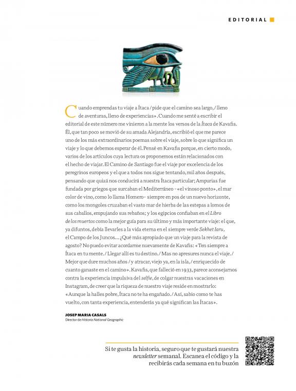 Descubre los episodios más apasionantes de la historia con las últimas y más rigurosas investigaciones por parte de los expertos de mayor prestigio. Todo ello, junto a fotografías, reconstrucciones históricas y mapas de gran calidad, símbolo y enseña de National Geographic. HISTORIA NATIONAL GEOGRAPHIC es la revista que, con el rigor editorial de National Geographic, te trasladará por las diferentes etapas de la historia: - hechos históricos trascendentales: batallas, exploraciones, conquistas, revoluciones - excepcionales personajes: Cleopatra, César, Leonardo da Vinci, Napoleón - avances culturales y científicos: el nacimiento de la escritura, la aparición del alfabeto, la astronomía en Mesopotamia, la medicina en Grecia - grandes monumentos: catedrales góticas, la Capilla Sixtina, la Ciudad - diferentes civilizaciones y su vida cotidiana: desde Egipto hasta el mundo maya