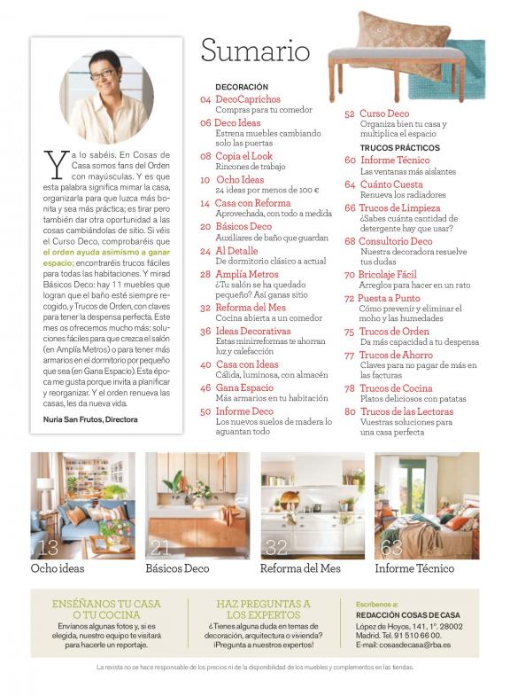 COSAS DE CASA: La revista de decoración práctica en la que encontrarás inspiración real para tu hogar. En ella encontrarás las mejores ideas para sacarle todo el partido a tu casa; informes y guías técnicas de productos con información práctica sobre precios y marcas y los mejores trucos para ordenar, organizar, reformar y decorar con éxito.