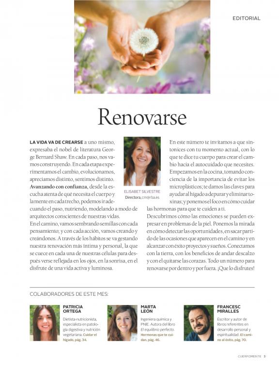 CUERPOMENTE La revista número 1 en salud y alimentación natural. Una publicación pionera y referente para todas las personas interesadas en cuidarse de forma sana y natural, que cuenta con los mejores especialistas, la información más actual y los consejos más eficaces para disfrutar de una vida más saludable y plena.