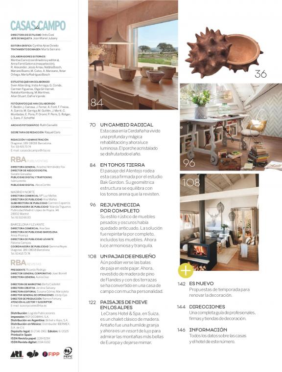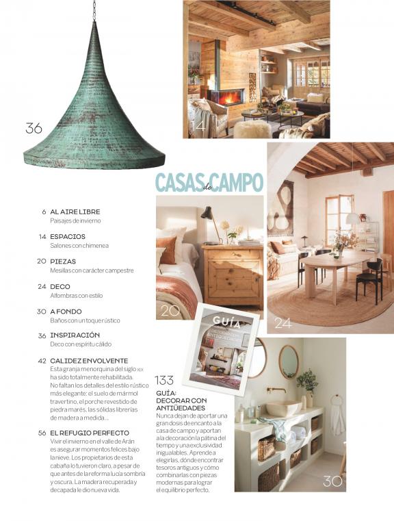CASAS DE CAMPO Especializada en la decoración y el estilo de vida campestres, despliega el encanto de las casas rústicas actualizadas. Y todos los elementos únicos de una casa de campo: porches tranquilos rodeados de flores, jardines pensados para disfrutar, salones con paredes de piedra vista, vigas de madera rehabilitadas o recicladas, chimeneas que aportan una extraordinaria calidez, piezas con sabor de antes, tejidos gustosos y nobles, trucos decorativos rustic chic... Y en muchos estilos diferentes para decorar una casa de ensueño: desde la elegancia del clásico al romántico provenzal o al luminoso mediterráneo.