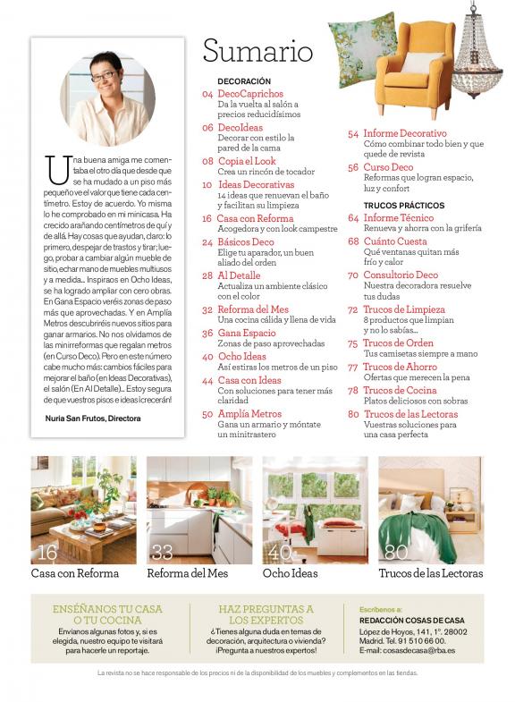 COSAS DE CASA: La revista de decoración práctica en la que encontrarás inspiración real para tu hogar. En ella encontrarás las mejores ideas para sacarle todo el partido a tu casa; informes y guías técnicas de productos con información práctica sobre precios y marcas y los mejores trucos para ordenar, organizar, reformar y decorar con éxito.