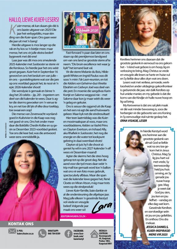 Kuier gee raad oor alles van ouerskap, geldsake, verhoudings en gesondheid tot mode, skoonheid, dekor en kos. Die tydskrif deel inspirerende stories oor mense in die gemeenskap en streef daarna om lesers op te hef en te bemagtig deur die klem te plaas op positiewe stories en suksesvolle rolmodelle. Die projekte is grootliks gemeenskapgebaseerd, met die visie om waarlik ’n verskil in lesers se lewens te maak.