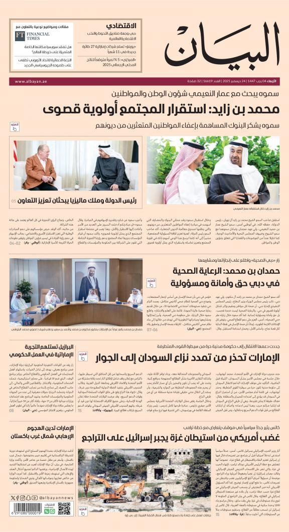 يمكنك الآن الاستمتاع بتصفح النسخة الرقمية، والتي هي طبق الأصل عن النسخة الورقية لصحيفة البيان على هاتفكم الذكي أو الجهاز اللوحي أو على شاشة الحاسوب. النسخة الرقمية تتيح لكم تجربة متميزة للعدد اليومي بكل المقالات والأخبار والميزات وبطريقة سلسة حيث يمكنكم التمتع بقراءة صفحاتكم المفضلة مع إمكانية البحث ومشاركة الأخبار في أي وقت وأي مكان كمرادف عن النسخة الورقية. بالإضافة لميزة القراءة بدون إنترنت عند تحميل النسخة المطلوبة وميزات أخرى ستتعرفون عليها عند تحميل التطبيق. في العاشر من مايو سنة 1980 صدر العدد الأول من صحيفة "البيان" لكي تشكل خلال رحلة مستمرة خلال العقود الأربعة مدرسة صحافية خرجت أجيالا من الصحافيين على مستوى دولة الإمارات والعالم العربي. وتصدر الصحيفة، التي تتبع مؤسسة دبي للإعلام، يومياً في نسخ ورقية ورقمية، تصل الى جمهور عريض من المتابعين في دولة الإمارات وعلى امتداد العالم العربي والعالم.