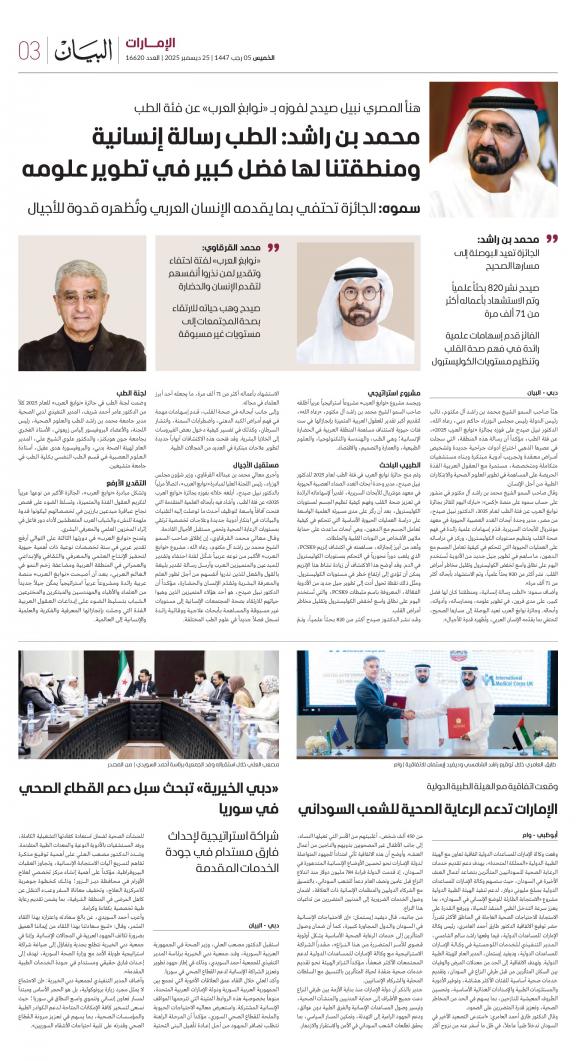 يمكنك الآن الاستمتاع بتصفح النسخة الرقمية، والتي هي طبق الأصل عن النسخة الورقية لصحيفة البيان على هاتفكم الذكي أو الجهاز اللوحي أو على شاشة الحاسوب. النسخة الرقمية تتيح لكم تجربة متميزة للعدد اليومي بكل المقالات والأخبار والميزات وبطريقة سلسة حيث يمكنكم التمتع بقراءة صفحاتكم المفضلة مع إمكانية البحث ومشاركة الأخبار في أي وقت وأي مكان كمرادف عن النسخة الورقية. بالإضافة لميزة القراءة بدون إنترنت عند تحميل النسخة المطلوبة وميزات أخرى ستتعرفون عليها عند تحميل التطبيق. في العاشر من مايو سنة 1980 صدر العدد الأول من صحيفة "البيان" لكي تشكل خلال رحلة مستمرة خلال العقود الأربعة مدرسة صحافية خرجت أجيالا من الصحافيين على مستوى دولة الإمارات والعالم العربي. وتصدر الصحيفة، التي تتبع مؤسسة دبي للإعلام، يومياً في نسخ ورقية ورقمية، تصل الى جمهور عريض من المتابعين في دولة الإمارات وعلى امتداد العالم العربي والعالم.