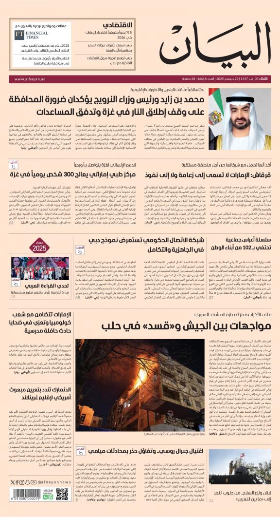 يمكنك الآن الاستمتاع بتصفح النسخة الرقمية، والتي هي طبق الأصل عن النسخة الورقية لصحيفة البيان على هاتفكم الذكي أو الجهاز اللوحي أو على شاشة الحاسوب. النسخة الرقمية تتيح لكم تجربة متميزة للعدد اليومي بكل المقالات والأخبار والميزات وبطريقة سلسة حيث يمكنكم التمتع بقراءة صفحاتكم المفضلة مع إمكانية البحث ومشاركة الأخبار في أي وقت وأي مكان كمرادف عن النسخة الورقية. بالإضافة لميزة القراءة بدون إنترنت عند تحميل النسخة المطلوبة وميزات أخرى ستتعرفون عليها عند تحميل التطبيق. في العاشر من مايو سنة 1980 صدر العدد الأول من صحيفة "البيان" لكي تشكل خلال رحلة مستمرة خلال العقود الأربعة مدرسة صحافية خرجت أجيالا من الصحافيين على مستوى دولة الإمارات والعالم العربي. وتصدر الصحيفة، التي تتبع مؤسسة دبي للإعلام، يومياً في نسخ ورقية ورقمية، تصل الى جمهور عريض من المتابعين في دولة الإمارات وعلى امتداد العالم العربي والعالم.