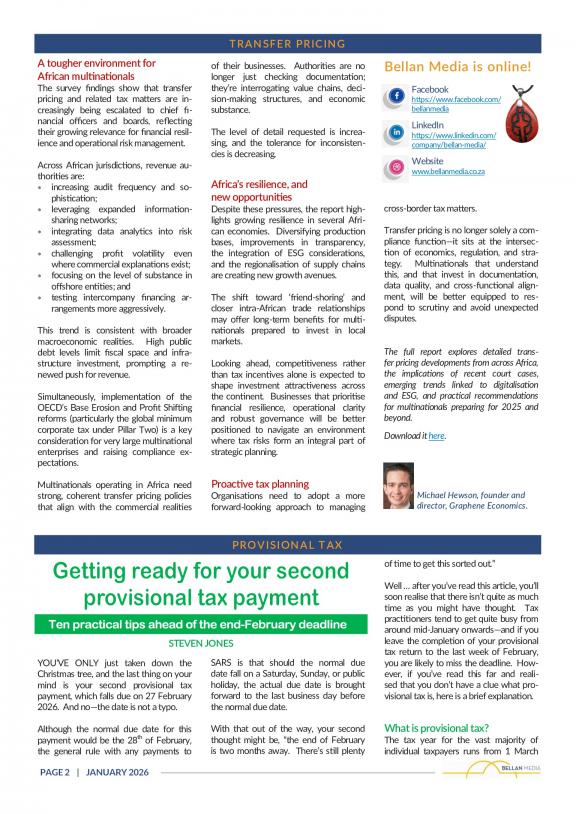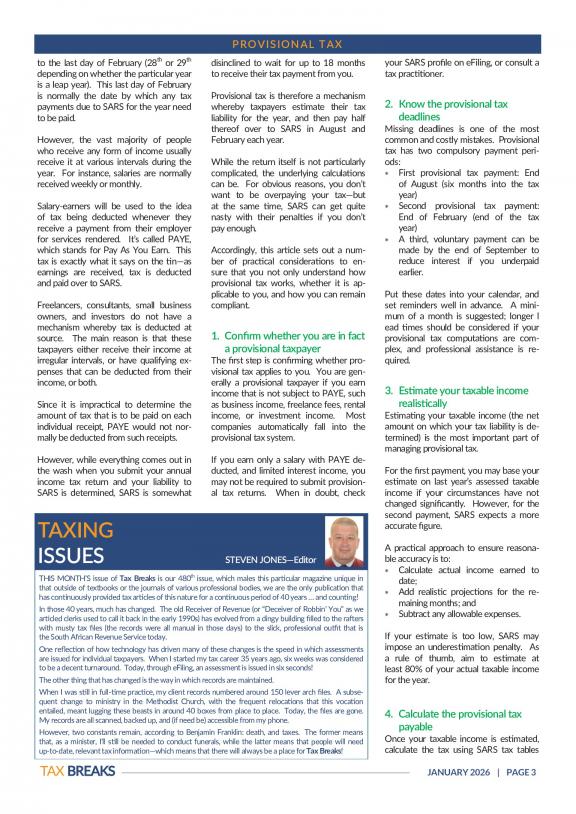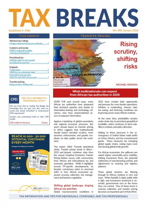 Tax Breaks draws from the collective wisdom of the country's leading tax experts, helping subscribers minimise their tax bills, understand their compliance obligations, structure their affairs in a tax-efficient manner, interact with SARS, and be kept up to date on all the latest tax issues.