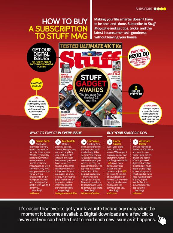 Stuff Magazine, the world's best-selling gadget & technology magazine. Stuff is your expert, up to the minute guide on gadgets, gear, technology - and how to play with them. Our expert reviews and tests sort the best from the rest in digital cameras, cellphones, computers, games, fashion, wheels, lifestyle products and the weird and wonderful. Stuff is a magazine about technology, but it’s more about how a product looks and how it fits into the reader’s life.
