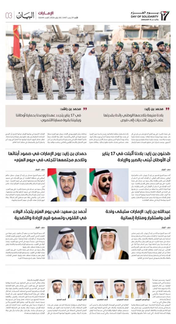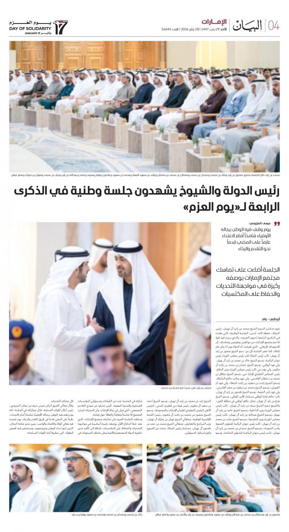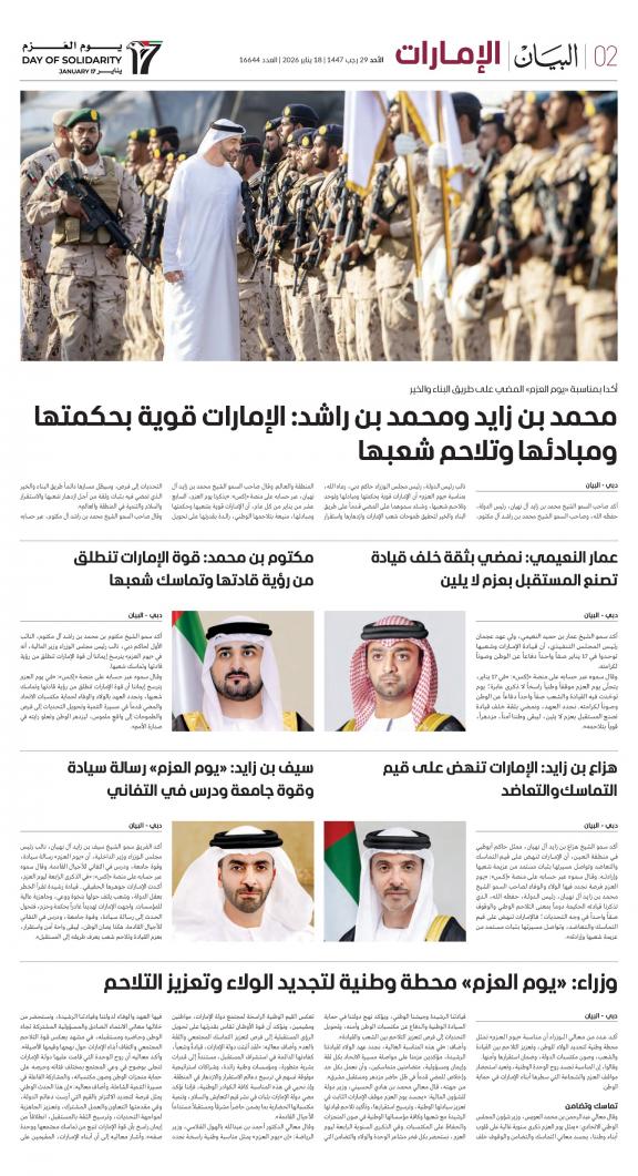 يمكنك الآن الاستمتاع بتصفح النسخة الرقمية، والتي هي طبق الأصل عن النسخة الورقية لصحيفة البيان على هاتفكم الذكي أو الجهاز اللوحي أو على شاشة الحاسوب. النسخة الرقمية تتيح لكم تجربة متميزة للعدد اليومي بكل المقالات والأخبار والميزات وبطريقة سلسة حيث يمكنكم التمتع بقراءة صفحاتكم المفضلة مع إمكانية البحث ومشاركة الأخبار في أي وقت وأي مكان كمرادف عن النسخة الورقية. بالإضافة لميزة القراءة بدون إنترنت عند تحميل النسخة المطلوبة وميزات أخرى ستتعرفون عليها عند تحميل التطبيق. في العاشر من مايو سنة 1980 صدر العدد الأول من صحيفة "البيان" لكي تشكل خلال رحلة مستمرة خلال العقود الأربعة مدرسة صحافية خرجت أجيالا من الصحافيين على مستوى دولة الإمارات والعالم العربي. وتصدر الصحيفة، التي تتبع مؤسسة دبي للإعلام، يومياً في نسخ ورقية ورقمية، تصل الى جمهور عريض من المتابعين في دولة الإمارات وعلى امتداد العالم العربي والعالم.