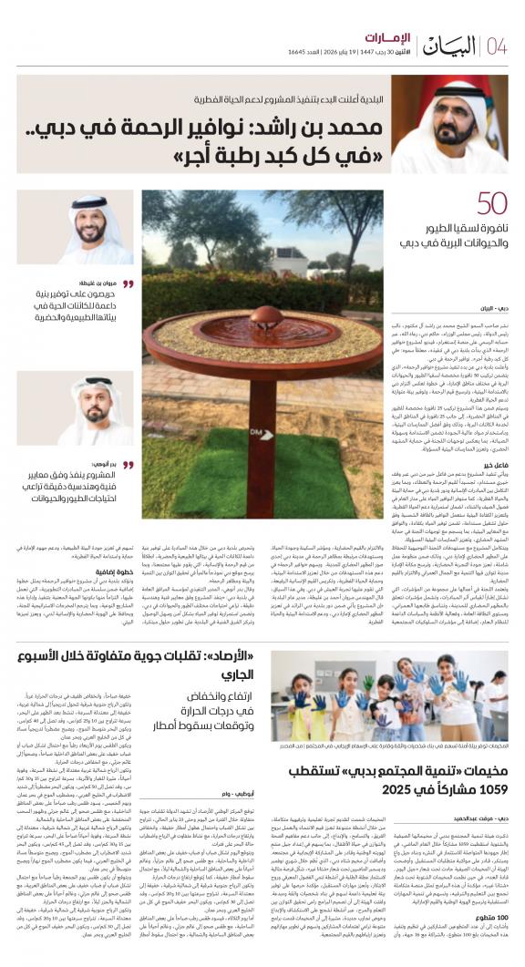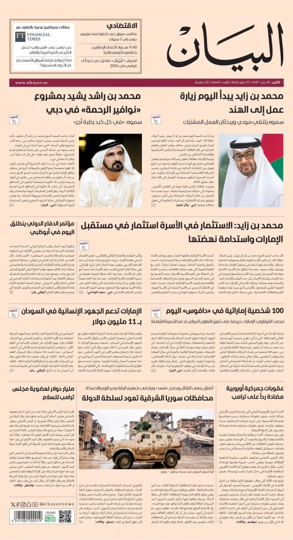 يمكنك الآن الاستمتاع بتصفح النسخة الرقمية، والتي هي طبق الأصل عن النسخة الورقية لصحيفة البيان على هاتفكم الذكي أو الجهاز اللوحي أو على شاشة الحاسوب. النسخة الرقمية تتيح لكم تجربة متميزة للعدد اليومي بكل المقالات والأخبار والميزات وبطريقة سلسة حيث يمكنكم التمتع بقراءة صفحاتكم المفضلة مع إمكانية البحث ومشاركة الأخبار في أي وقت وأي مكان كمرادف عن النسخة الورقية. بالإضافة لميزة القراءة بدون إنترنت عند تحميل النسخة المطلوبة وميزات أخرى ستتعرفون عليها عند تحميل التطبيق. في العاشر من مايو سنة 1980 صدر العدد الأول من صحيفة "البيان" لكي تشكل خلال رحلة مستمرة خلال العقود الأربعة مدرسة صحافية خرجت أجيالا من الصحافيين على مستوى دولة الإمارات والعالم العربي. وتصدر الصحيفة، التي تتبع مؤسسة دبي للإعلام، يومياً في نسخ ورقية ورقمية، تصل الى جمهور عريض من المتابعين في دولة الإمارات وعلى امتداد العالم العربي والعالم.