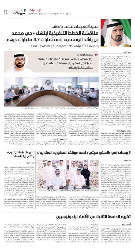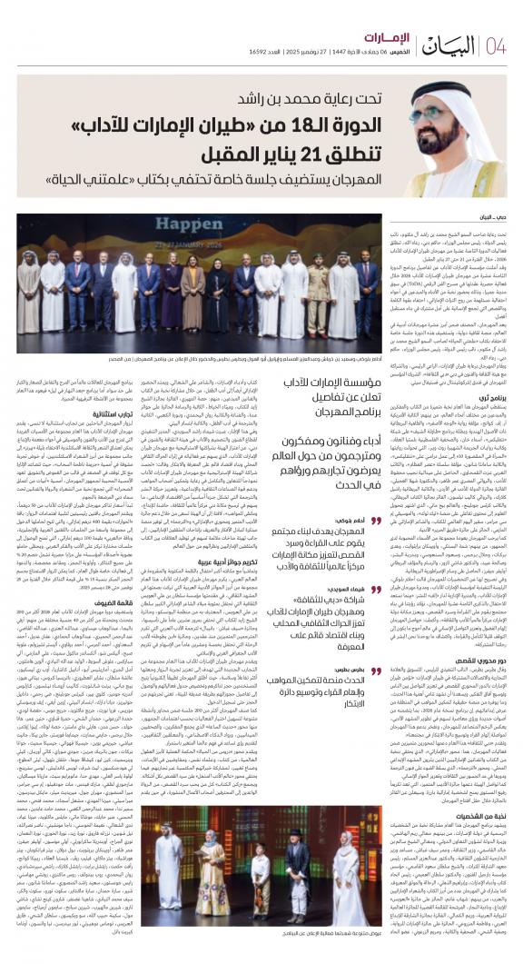 يمكنك الآن الاستمتاع بتصفح النسخة الرقمية، والتي هي طبق الأصل عن النسخة الورقية لصحيفة البيان على هاتفكم الذكي أو الجهاز اللوحي أو على شاشة الحاسوب. النسخة الرقمية تتيح لكم تجربة متميزة للعدد اليومي بكل المقالات والأخبار والميزات وبطريقة سلسة حيث يمكنكم التمتع بقراءة صفحاتكم المفضلة مع إمكانية البحث ومشاركة الأخبار في أي وقت وأي مكان كمرادف عن النسخة الورقية. بالإضافة لميزة القراءة بدون إنترنت عند تحميل النسخة المطلوبة وميزات أخرى ستتعرفون عليها عند تحميل التطبيق. في العاشر من مايو سنة 1980 صدر العدد الأول من صحيفة "البيان" لكي تشكل خلال رحلة مستمرة خلال العقود الأربعة مدرسة صحافية خرجت أجيالا من الصحافيين على مستوى دولة الإمارات والعالم العربي. وتصدر الصحيفة، التي تتبع مؤسسة دبي للإعلام، يومياً في نسخ ورقية ورقمية، تصل الى جمهور عريض من المتابعين في دولة الإمارات وعلى امتداد العالم العربي والعالم.