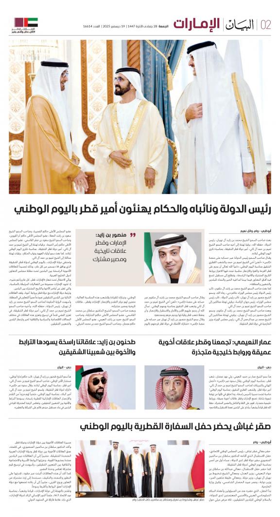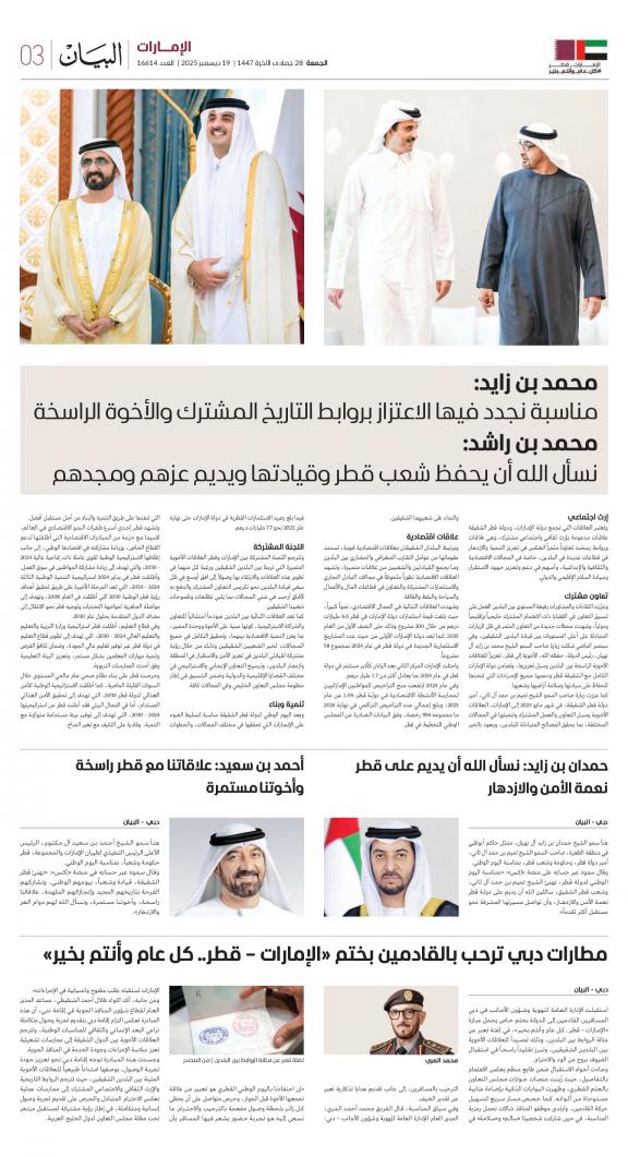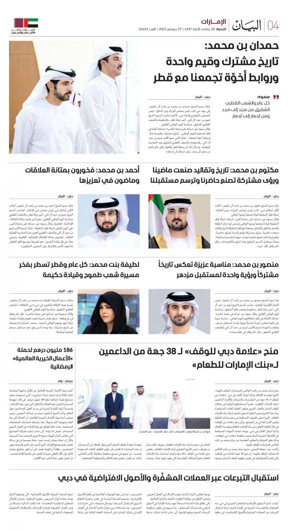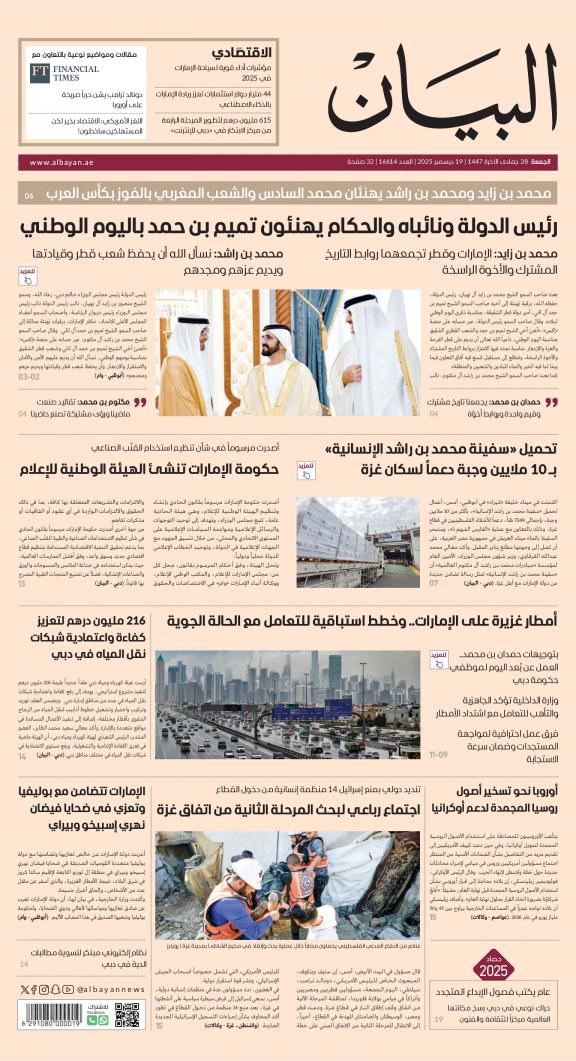يمكنك الآن الاستمتاع بتصفح النسخة الرقمية، والتي هي طبق الأصل عن النسخة الورقية لصحيفة البيان على هاتفكم الذكي أو الجهاز اللوحي أو على شاشة الحاسوب. النسخة الرقمية تتيح لكم تجربة متميزة للعدد اليومي بكل المقالات والأخبار والميزات وبطريقة سلسة حيث يمكنكم التمتع بقراءة صفحاتكم المفضلة مع إمكانية البحث ومشاركة الأخبار في أي وقت وأي مكان كمرادف عن النسخة الورقية. بالإضافة لميزة القراءة بدون إنترنت عند تحميل النسخة المطلوبة وميزات أخرى ستتعرفون عليها عند تحميل التطبيق. في العاشر من مايو سنة 1980 صدر العدد الأول من صحيفة "البيان" لكي تشكل خلال رحلة مستمرة خلال العقود الأربعة مدرسة صحافية خرجت أجيالا من الصحافيين على مستوى دولة الإمارات والعالم العربي. وتصدر الصحيفة، التي تتبع مؤسسة دبي للإعلام، يومياً في نسخ ورقية ورقمية، تصل الى جمهور عريض من المتابعين في دولة الإمارات وعلى امتداد العالم العربي والعالم.