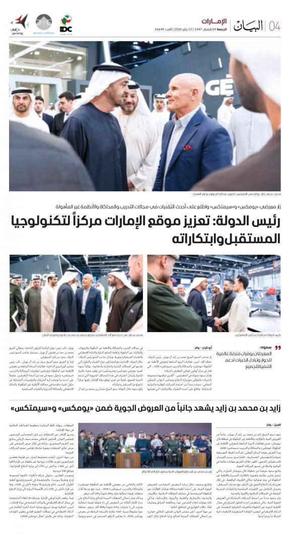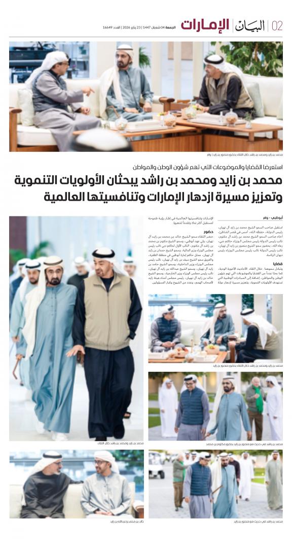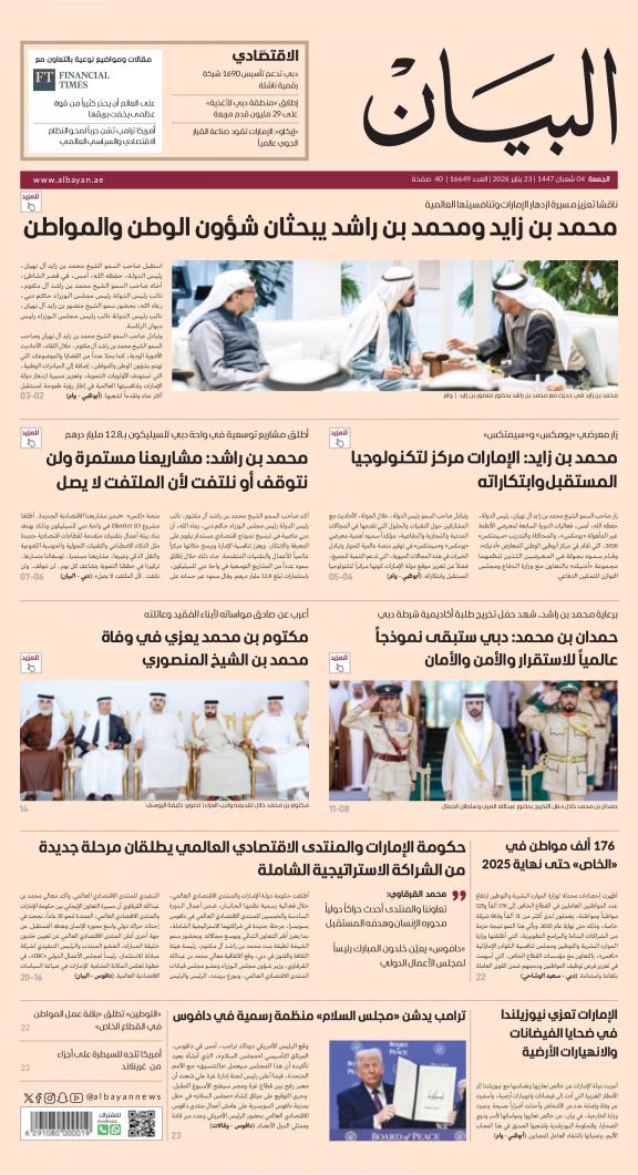 يمكنك الآن الاستمتاع بتصفح النسخة الرقمية، والتي هي طبق الأصل عن النسخة الورقية لصحيفة البيان على هاتفكم الذكي أو الجهاز اللوحي أو على شاشة الحاسوب. النسخة الرقمية تتيح لكم تجربة متميزة للعدد اليومي بكل المقالات والأخبار والميزات وبطريقة سلسة حيث يمكنكم التمتع بقراءة صفحاتكم المفضلة مع إمكانية البحث ومشاركة الأخبار في أي وقت وأي مكان كمرادف عن النسخة الورقية. بالإضافة لميزة القراءة بدون إنترنت عند تحميل النسخة المطلوبة وميزات أخرى ستتعرفون عليها عند تحميل التطبيق. في العاشر من مايو سنة 1980 صدر العدد الأول من صحيفة "البيان" لكي تشكل خلال رحلة مستمرة خلال العقود الأربعة مدرسة صحافية خرجت أجيالا من الصحافيين على مستوى دولة الإمارات والعالم العربي. وتصدر الصحيفة، التي تتبع مؤسسة دبي للإعلام، يومياً في نسخ ورقية ورقمية، تصل الى جمهور عريض من المتابعين في دولة الإمارات وعلى امتداد العالم العربي والعالم.