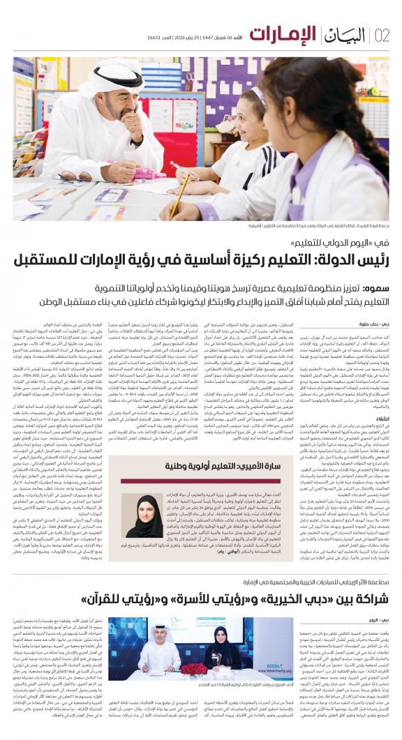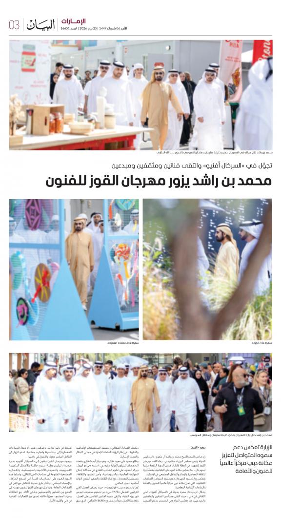 يمكنك الآن الاستمتاع بتصفح النسخة الرقمية، والتي هي طبق الأصل عن النسخة الورقية لصحيفة البيان على هاتفكم الذكي أو الجهاز اللوحي أو على شاشة الحاسوب. النسخة الرقمية تتيح لكم تجربة متميزة للعدد اليومي بكل المقالات والأخبار والميزات وبطريقة سلسة حيث يمكنكم التمتع بقراءة صفحاتكم المفضلة مع إمكانية البحث ومشاركة الأخبار في أي وقت وأي مكان كمرادف عن النسخة الورقية. بالإضافة لميزة القراءة بدون إنترنت عند تحميل النسخة المطلوبة وميزات أخرى ستتعرفون عليها عند تحميل التطبيق. في العاشر من مايو سنة 1980 صدر العدد الأول من صحيفة "البيان" لكي تشكل خلال رحلة مستمرة خلال العقود الأربعة مدرسة صحافية خرجت أجيالا من الصحافيين على مستوى دولة الإمارات والعالم العربي. وتصدر الصحيفة، التي تتبع مؤسسة دبي للإعلام، يومياً في نسخ ورقية ورقمية، تصل الى جمهور عريض من المتابعين في دولة الإمارات وعلى امتداد العالم العربي والعالم.