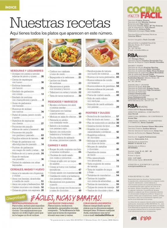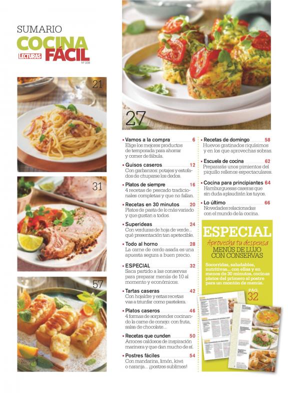 La revista de cocina con recetas fáciles y económicas elaboradas con productos de temporada que soluciona tus menús diarios. Más de 50 ideas superapetitosas para comer bien, de forma variada y con el mínimo gasto.