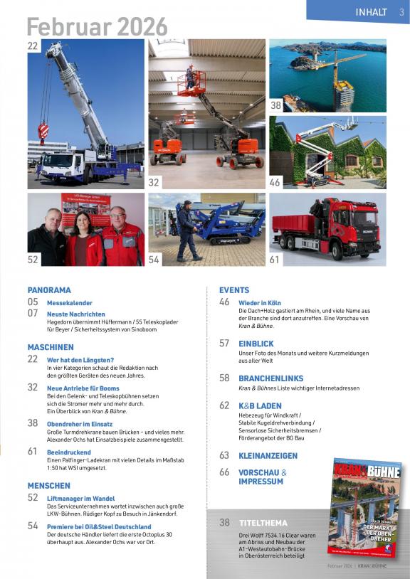 Alle Magazine des Vertikal Verlags bieten fachliche und unabhängige Berichterstattung über die Hebeindustrie mit dem Fokus auf Krane, Arbeitsbühnen, Teleskoplader und Ladekrane.