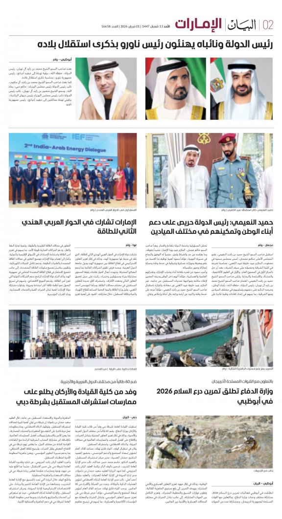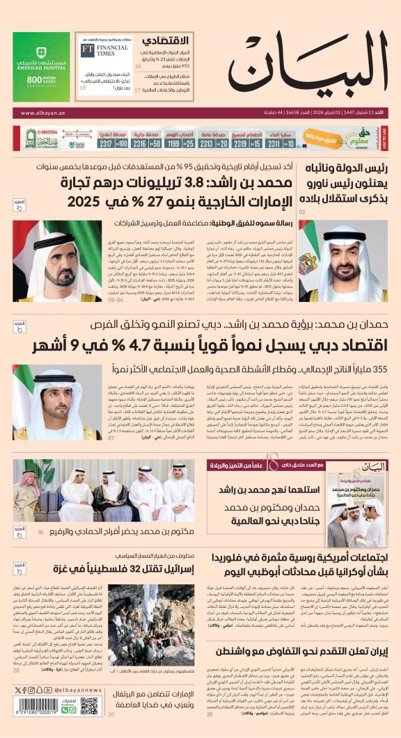 يمكنك الآن الاستمتاع بتصفح النسخة الرقمية، والتي هي طبق الأصل عن النسخة الورقية لصحيفة البيان على هاتفكم الذكي أو الجهاز اللوحي أو على شاشة الحاسوب. النسخة الرقمية تتيح لكم تجربة متميزة للعدد اليومي بكل المقالات والأخبار والميزات وبطريقة سلسة حيث يمكنكم التمتع بقراءة صفحاتكم المفضلة مع إمكانية البحث ومشاركة الأخبار في أي وقت وأي مكان كمرادف عن النسخة الورقية. بالإضافة لميزة القراءة بدون إنترنت عند تحميل النسخة المطلوبة وميزات أخرى ستتعرفون عليها عند تحميل التطبيق. في العاشر من مايو سنة 1980 صدر العدد الأول من صحيفة "البيان" لكي تشكل خلال رحلة مستمرة خلال العقود الأربعة مدرسة صحافية خرجت أجيالا من الصحافيين على مستوى دولة الإمارات والعالم العربي. وتصدر الصحيفة، التي تتبع مؤسسة دبي للإعلام، يومياً في نسخ ورقية ورقمية، تصل الى جمهور عريض من المتابعين في دولة الإمارات وعلى امتداد العالم العربي والعالم.