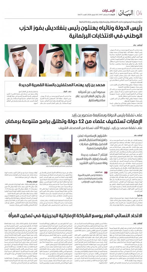 يمكنك الآن الاستمتاع بتصفح النسخة الرقمية، والتي هي طبق الأصل عن النسخة الورقية لصحيفة البيان على هاتفكم الذكي أو الجهاز اللوحي أو على شاشة الحاسوب. النسخة الرقمية تتيح لكم تجربة متميزة للعدد اليومي بكل المقالات والأخبار والميزات وبطريقة سلسة حيث يمكنكم التمتع بقراءة صفحاتكم المفضلة مع إمكانية البحث ومشاركة الأخبار في أي وقت وأي مكان كمرادف عن النسخة الورقية. بالإضافة لميزة القراءة بدون إنترنت عند تحميل النسخة المطلوبة وميزات أخرى ستتعرفون عليها عند تحميل التطبيق. في العاشر من مايو سنة 1980 صدر العدد الأول من صحيفة "البيان" لكي تشكل خلال رحلة مستمرة خلال العقود الأربعة مدرسة صحافية خرجت أجيالا من الصحافيين على مستوى دولة الإمارات والعالم العربي. وتصدر الصحيفة، التي تتبع مؤسسة دبي للإعلام، يومياً في نسخ ورقية ورقمية، تصل الى جمهور عريض من المتابعين في دولة الإمارات وعلى امتداد العالم العربي والعالم.