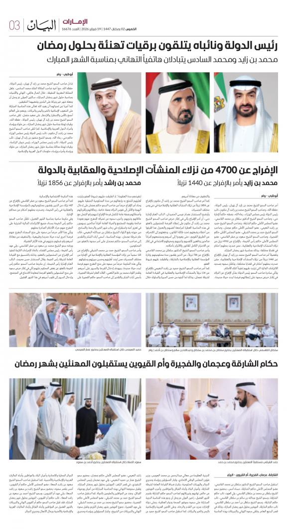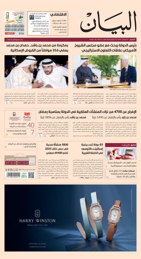 يمكنك الآن الاستمتاع بتصفح النسخة الرقمية، والتي هي طبق الأصل عن النسخة الورقية لصحيفة البيان على هاتفكم الذكي أو الجهاز اللوحي أو على شاشة الحاسوب. النسخة الرقمية تتيح لكم تجربة متميزة للعدد اليومي بكل المقالات والأخبار والميزات وبطريقة سلسة حيث يمكنكم التمتع بقراءة صفحاتكم المفضلة مع إمكانية البحث ومشاركة الأخبار في أي وقت وأي مكان كمرادف عن النسخة الورقية. بالإضافة لميزة القراءة بدون إنترنت عند تحميل النسخة المطلوبة وميزات أخرى ستتعرفون عليها عند تحميل التطبيق. في العاشر من مايو سنة 1980 صدر العدد الأول من صحيفة "البيان" لكي تشكل خلال رحلة مستمرة خلال العقود الأربعة مدرسة صحافية خرجت أجيالا من الصحافيين على مستوى دولة الإمارات والعالم العربي. وتصدر الصحيفة، التي تتبع مؤسسة دبي للإعلام، يومياً في نسخ ورقية ورقمية، تصل الى جمهور عريض من المتابعين في دولة الإمارات وعلى امتداد العالم العربي والعالم.