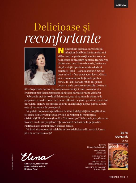 „Good Food România este pentru cei care abia așteaptă weekendul ca să pregătească reţeta de tort spectaculos la care au visat toată săptămâna. Pentru cei care își petrec sâmbătă dimineaţa ore în șir în pieţe și în băcănii, ca să descopere cele mai noi și proaspete ingrediente și care, de luni până vineri, atunci când sunt la birou, visează la pastele pe care le vor pregăti seara acasă. Pentru noi, mâncarea e una dintre cele mai mari plăceri, fie că o pregătim noi, fie că o căutăm în restaurante, fie că doar visăm la ea cu ochii deschiși în fiecare zi.” Oana Titică, Redactor Șef