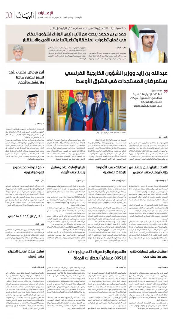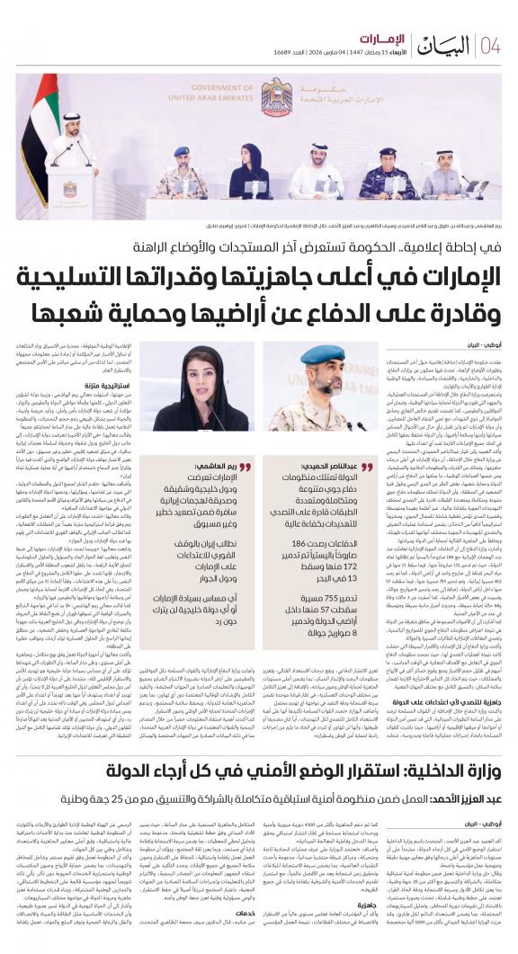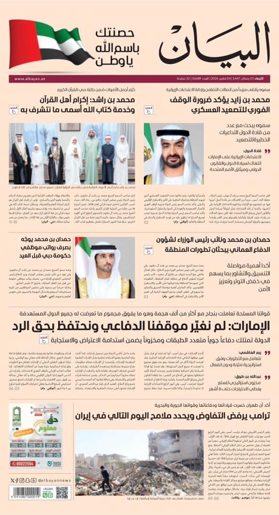 يمكنك الآن الاستمتاع بتصفح النسخة الرقمية، والتي هي طبق الأصل عن النسخة الورقية لصحيفة البيان على هاتفكم الذكي أو الجهاز اللوحي أو على شاشة الحاسوب. النسخة الرقمية تتيح لكم تجربة متميزة للعدد اليومي بكل المقالات والأخبار والميزات وبطريقة سلسة حيث يمكنكم التمتع بقراءة صفحاتكم المفضلة مع إمكانية البحث ومشاركة الأخبار في أي وقت وأي مكان كمرادف عن النسخة الورقية. بالإضافة لميزة القراءة بدون إنترنت عند تحميل النسخة المطلوبة وميزات أخرى ستتعرفون عليها عند تحميل التطبيق. في العاشر من مايو سنة 1980 صدر العدد الأول من صحيفة "البيان" لكي تشكل خلال رحلة مستمرة خلال العقود الأربعة مدرسة صحافية خرجت أجيالا من الصحافيين على مستوى دولة الإمارات والعالم العربي. وتصدر الصحيفة، التي تتبع مؤسسة دبي للإعلام، يومياً في نسخ ورقية ورقمية، تصل الى جمهور عريض من المتابعين في دولة الإمارات وعلى امتداد العالم العربي والعالم.
