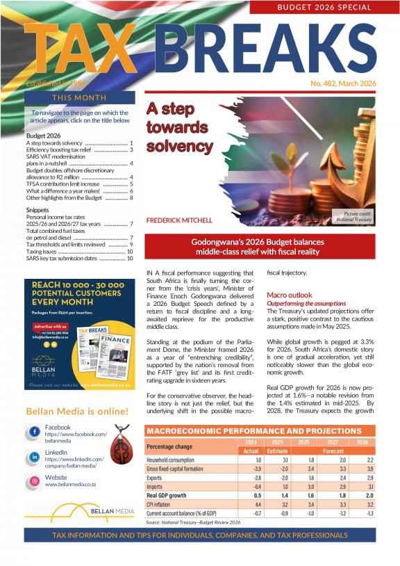 Tax Breaks draws from the collective wisdom of the country's leading tax experts, helping subscribers minimise their tax bills, understand their compliance obligations, structure their affairs in a tax-efficient manner, interact with SARS, and be kept up to date on all the latest tax issues.