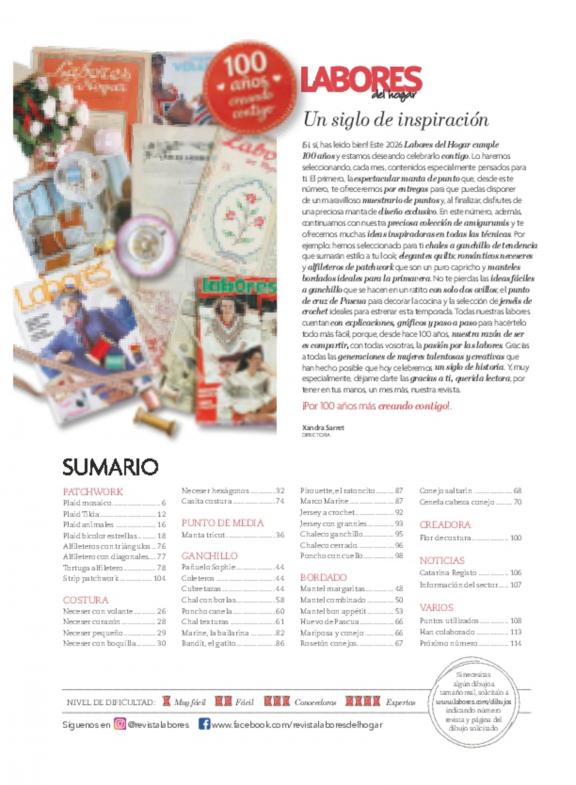 La revista especializada en bordado, punto de cruz, patchwork, ganchillo y punto de media, número 1 en España desde 1926. Incluye labores creativas y textiles para decorar tu hogar así como complementos, accesorios, bolsos, jerseys… y cualquier tipo de manualidades creativas y de tendencia, con las explicaciones, gráficos, dibujos y el paso a paso que necesitas para realizarlas en casa. Descubre las últimas tendencias del DIY para todos los niveles con Labores del Hogar y disfruta del placer de crear con tus propias manos.