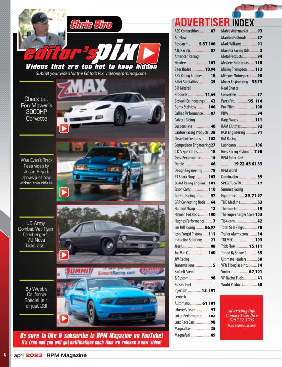 The focus of RPM is to bring a diverse mix of high performance street and race automobiles to life within its pages including: Race cars, musclecars, hot rods and street legal machines with an emphasis on the "Extreme" including Fast doorslammer and outlaw forms of Drag Racing. Not familiar with these types of cars? They are considered to be the top shelf of the industry and are on the edge with regards to design and power. Grab your copy today and check it out. We are sure you will want more!