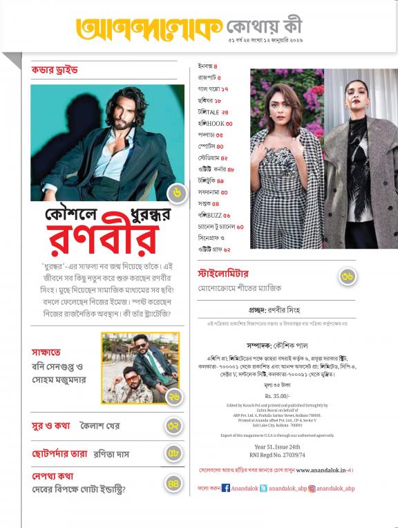 The first and one of its kind "Bangla‟ celebrity magazine, ANANDALOK shares moments that are exclusive & straight out of the lives of celebrities. Their family, social needs as well as individual outlook towards life creates a relatable space in reader’s mind, making them ‘Social Equals.