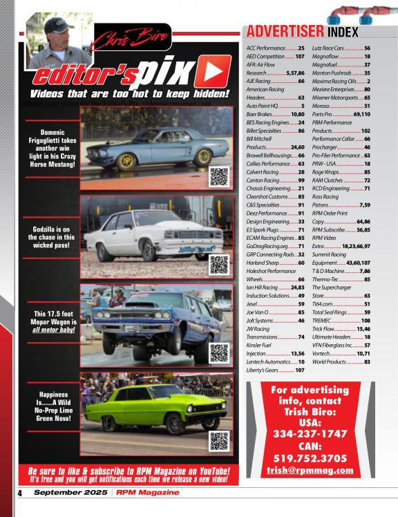 The focus of RPM is to bring a diverse mix of high performance street and race automobiles to life within its pages including: Race cars, musclecars, hot rods and street legal machines with an emphasis on the "Extreme" including Fast doorslammer and outlaw forms of Drag Racing. Not familiar with these types of cars? They are considered to be the top shelf of the industry and are on the edge with regards to design and power. Grab your copy today and check it out. We are sure you will want more!