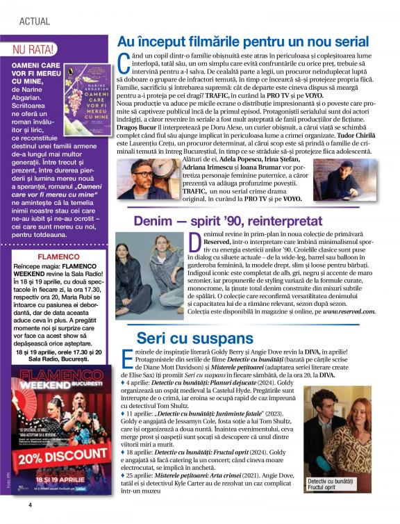 The information provided by Femeia de azi, is one of the present, a common everyday universe, close to the heart of women, debating topics of general interest, related to daily life. It addresses the woman concerned to learn more practical things, easy to reach, about health and lifestyle, eager to learn something new, to draw inspiration from fashion outfits from fashion markets.