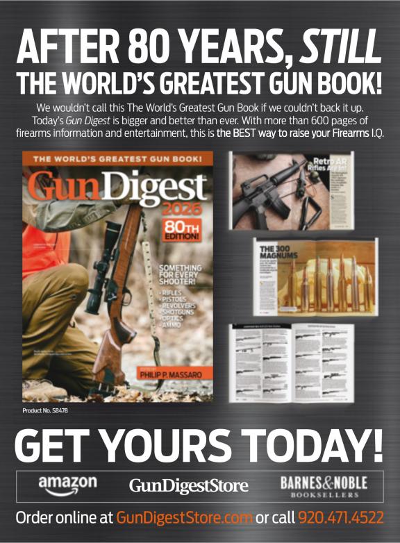 Gun Digest the Magazine is the premiere source for all the best coverage and reviews on the latest guns and gear from around the firearms industry. Our team of experts provides an exclusive look at all things firearms, from custom 1911s and collectibles to defensive handguns and AR-type rifles, and everything in between. We’ll bring you the latest on reloading, self-defense training & tactics, concealed carry, hunting guns, suppressors and much more