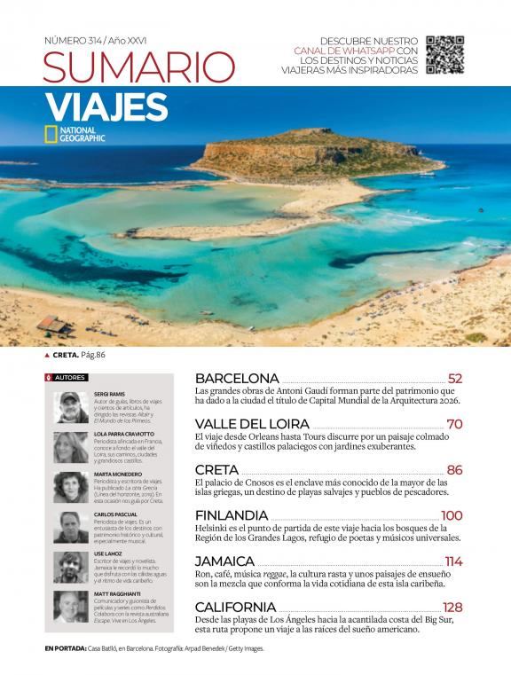 Los reportajes de la revista Viajes National Geographic son el medio idóneo para admirar la belleza del mundo, inspirarse o relajarse con ella, evocar antiguos viajes o plantearse otros nuevos. Con fotografías y textos de calidad excepcional, Viajes National Geographic presenta cada mes rutas por España, Europa y el resto del mundo, escapadas de fin de semana y paseos para conocer lo más atractivo de una ciudad, junto a experiencias en plena naturaleza o para disfrutar del patrimonio cultural.