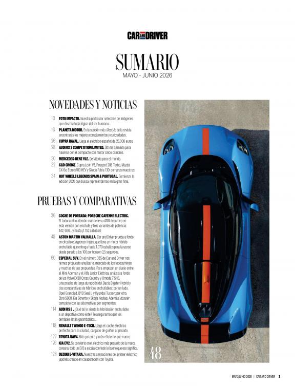 La revista número uno del motor en el mundo. Disfruta de la edición digital de la revista Car & Driver, con los mismos contenidos que la edición impresa y los beneficios del formato digital. Ponemos a tu alcance una nueva forma, sencilla y rápida, de disfrutar de la revista con más prestaciones, pensada para aquellos a los que les gusta disfrutar de los coches, con una información completa, un lenguaje claro y un atractivo diseño.