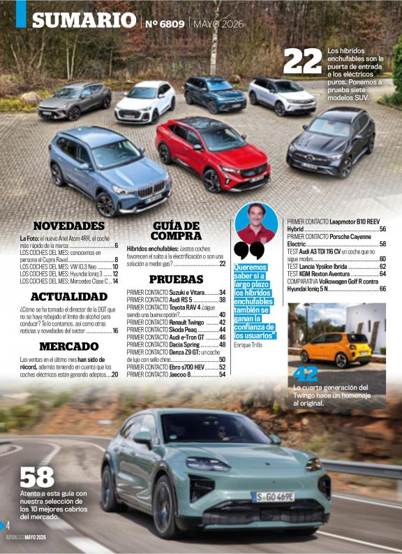 La revista semanal generalista del motor más vendida en España. Dirigida a todos los apasionados del mundo del motor, que cautiva incluso a los lectores que no están habituados a comprar revistas de coches. Fiable y rigurosa en el tratamiento de la información. Es práctica, clara, sencilla y directa en sus temas. Ofrece al lector todo lo que le interesa: exclusivas sobre los nuevos lanzamientos y prototipos, test y comparativas en profundidad y los trucos y consejos más prácticos.