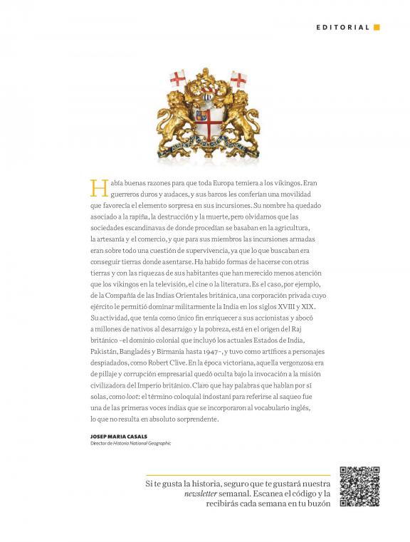 Descubre los episodios más apasionantes de la historia con las últimas y más rigurosas investigaciones por parte de los expertos de mayor prestigio. Todo ello, junto a fotografías, reconstrucciones históricas y mapas de gran calidad, símbolo y enseña de National Geographic. HISTORIA NATIONAL GEOGRAPHIC es la revista que, con el rigor editorial de National Geographic, te trasladará por las diferentes etapas de la historia: - hechos históricos trascendentales: batallas, exploraciones, conquistas, revoluciones - excepcionales personajes: Cleopatra, César, Leonardo da Vinci, Napoleón - avances culturales y científicos: el nacimiento de la escritura, la aparición del alfabeto, la astronomía en Mesopotamia, la medicina en Grecia - grandes monumentos: catedrales góticas, la Capilla Sixtina, la Ciudad - diferentes civilizaciones y su vida cotidiana: desde Egipto hasta el mundo maya