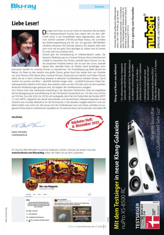 Mit dem neuen Film-Medium Blu-ray erweitern sich die Möglichkeiten der Heimkino-Unterhaltung um ein hochauflösendes Bild, verlustfreien digitalen Ton und neuen interaktiven Möglichkeiten. Das BLU-RAY MAGAZIN informiert über diese neue blaue Unterhaltungswelt. Mit dem BLU-RAY MAGAZIN bietet der Auerbach Verlag einen kompetenten Führer durch die neue Welt der hochauflösenden Heimkino-Unterhaltung an. Mit zahlreichen Tests aktueller Filme auf Blu-ray und umfangreichen Artikeln zu den neuesten Trends und Entwicklungen des neuen Mediums sowie zusätzlichen Informationen zu hochauflösenden Spielen für das Heimkino und aktueller Technik wie HD-Fernseher und Blu-ray-Player ist das BLU-RAY MAGAZIN ein in Deutschland einzigartiges, zukunftsweisendes Produkt auf dem Printmarkt.