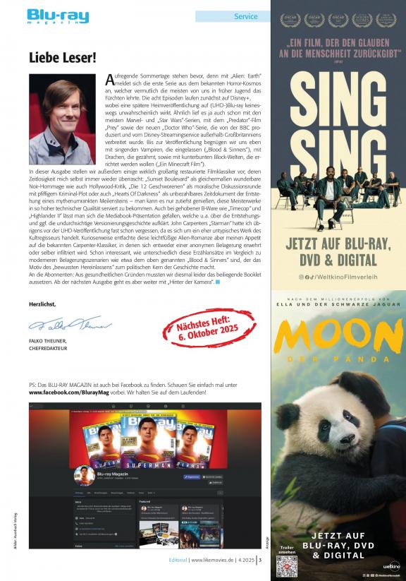 Mit dem neuen Film-Medium Blu-ray erweitern sich die Möglichkeiten der Heimkino-Unterhaltung um ein hochauflösendes Bild, verlustfreien digitalen Ton und neuen interaktiven Möglichkeiten. Das BLU-RAY MAGAZIN informiert über diese neue blaue Unterhaltungswelt. Mit dem BLU-RAY MAGAZIN bietet der Auerbach Verlag einen kompetenten Führer durch die neue Welt der hochauflösenden Heimkino-Unterhaltung an. Mit zahlreichen Tests aktueller Filme auf Blu-ray und umfangreichen Artikeln zu den neuesten Trends und Entwicklungen des neuen Mediums sowie zusätzlichen Informationen zu hochauflösenden Spielen für das Heimkino und aktueller Technik wie HD-Fernseher und Blu-ray-Player ist das BLU-RAY MAGAZIN ein in Deutschland einzigartiges, zukunftsweisendes Produkt auf dem Printmarkt.
