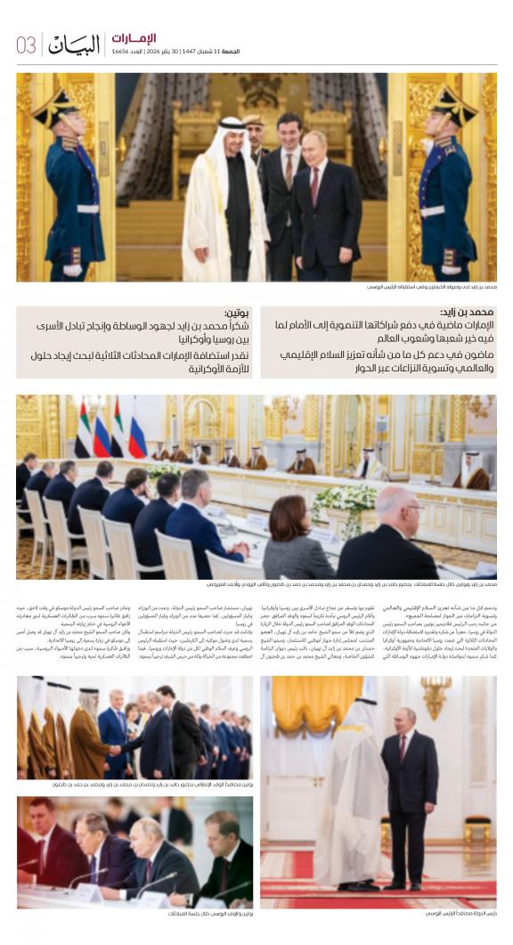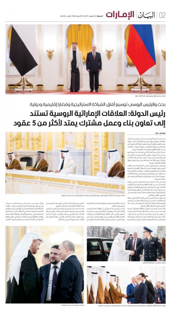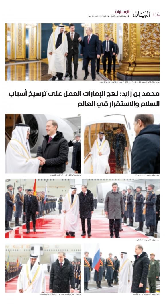 يمكنك الآن الاستمتاع بتصفح النسخة الرقمية، والتي هي طبق الأصل عن النسخة الورقية لصحيفة البيان على هاتفكم الذكي أو الجهاز اللوحي أو على شاشة الحاسوب. النسخة الرقمية تتيح لكم تجربة متميزة للعدد اليومي بكل المقالات والأخبار والميزات وبطريقة سلسة حيث يمكنكم التمتع بقراءة صفحاتكم المفضلة مع إمكانية البحث ومشاركة الأخبار في أي وقت وأي مكان كمرادف عن النسخة الورقية. بالإضافة لميزة القراءة بدون إنترنت عند تحميل النسخة المطلوبة وميزات أخرى ستتعرفون عليها عند تحميل التطبيق. في العاشر من مايو سنة 1980 صدر العدد الأول من صحيفة "البيان" لكي تشكل خلال رحلة مستمرة خلال العقود الأربعة مدرسة صحافية خرجت أجيالا من الصحافيين على مستوى دولة الإمارات والعالم العربي. وتصدر الصحيفة، التي تتبع مؤسسة دبي للإعلام، يومياً في نسخ ورقية ورقمية، تصل الى جمهور عريض من المتابعين في دولة الإمارات وعلى امتداد العالم العربي والعالم.
