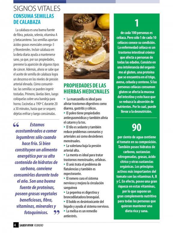SABER VIVIR España es la revista mensual nº1 en ventas. Un referente en salud, alimentación y calidad de vida. Con contenidos rigurosos y apoyados por los mejores profesionales. Entre sus páginas podemos encontrar información sobre cómo mejorar el exceso de peso, la presión arterial, el colesterol o el funcionamiento del corazón, entre otros muchas cuestiones de salud; las pautas para seguir una alimentación saludable; y el estilo de vida que nos permite vivir mejor.