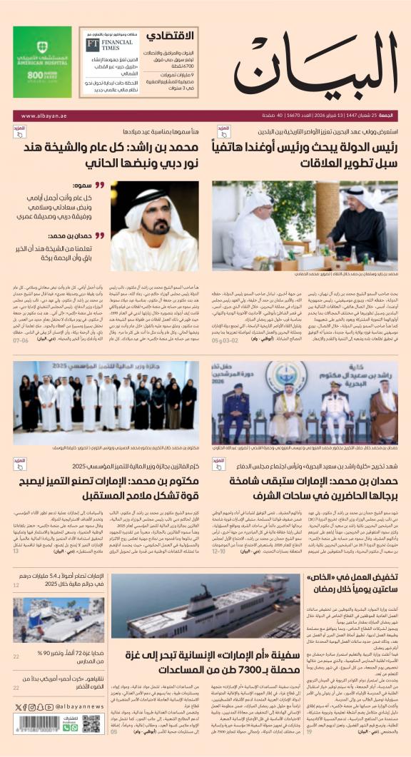 يمكنك الآن الاستمتاع بتصفح النسخة الرقمية، والتي هي طبق الأصل عن النسخة الورقية لصحيفة البيان على هاتفكم الذكي أو الجهاز اللوحي أو على شاشة الحاسوب. النسخة الرقمية تتيح لكم تجربة متميزة للعدد اليومي بكل المقالات والأخبار والميزات وبطريقة سلسة حيث يمكنكم التمتع بقراءة صفحاتكم المفضلة مع إمكانية البحث ومشاركة الأخبار في أي وقت وأي مكان كمرادف عن النسخة الورقية. بالإضافة لميزة القراءة بدون إنترنت عند تحميل النسخة المطلوبة وميزات أخرى ستتعرفون عليها عند تحميل التطبيق. في العاشر من مايو سنة 1980 صدر العدد الأول من صحيفة "البيان" لكي تشكل خلال رحلة مستمرة خلال العقود الأربعة مدرسة صحافية خرجت أجيالا من الصحافيين على مستوى دولة الإمارات والعالم العربي. وتصدر الصحيفة، التي تتبع مؤسسة دبي للإعلام، يومياً في نسخ ورقية ورقمية، تصل الى جمهور عريض من المتابعين في دولة الإمارات وعلى امتداد العالم العربي والعالم.