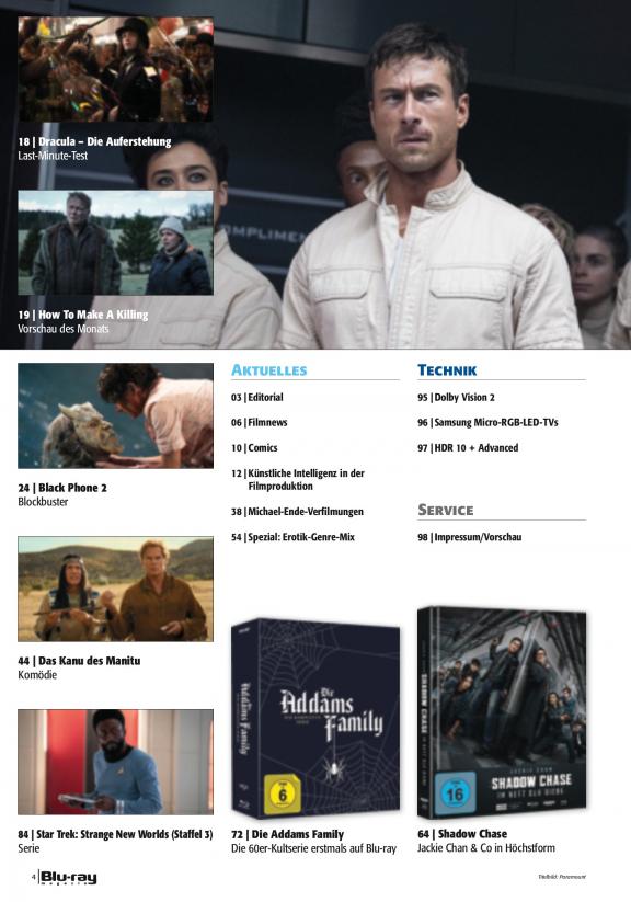 Mit dem neuen Film-Medium Blu-ray erweitern sich die Möglichkeiten der Heimkino-Unterhaltung um ein hochauflösendes Bild, verlustfreien digitalen Ton und neuen interaktiven Möglichkeiten. Das BLU-RAY MAGAZIN informiert über diese neue blaue Unterhaltungswelt. Mit dem BLU-RAY MAGAZIN bietet der Auerbach Verlag einen kompetenten Führer durch die neue Welt der hochauflösenden Heimkino-Unterhaltung an. Mit zahlreichen Tests aktueller Filme auf Blu-ray und umfangreichen Artikeln zu den neuesten Trends und Entwicklungen des neuen Mediums sowie zusätzlichen Informationen zu hochauflösenden Spielen für das Heimkino und aktueller Technik wie HD-Fernseher und Blu-ray-Player ist das BLU-RAY MAGAZIN ein in Deutschland einzigartiges, zukunftsweisendes Produkt auf dem Printmarkt.