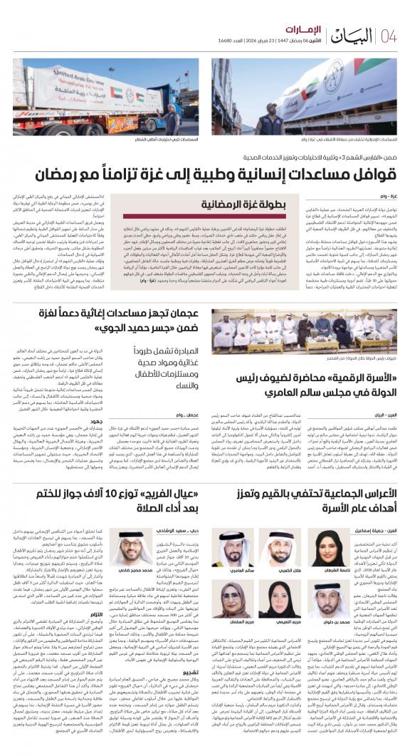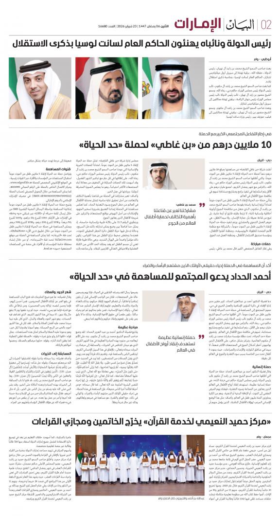 يمكنك الآن الاستمتاع بتصفح النسخة الرقمية، والتي هي طبق الأصل عن النسخة الورقية لصحيفة البيان على هاتفكم الذكي أو الجهاز اللوحي أو على شاشة الحاسوب. النسخة الرقمية تتيح لكم تجربة متميزة للعدد اليومي بكل المقالات والأخبار والميزات وبطريقة سلسة حيث يمكنكم التمتع بقراءة صفحاتكم المفضلة مع إمكانية البحث ومشاركة الأخبار في أي وقت وأي مكان كمرادف عن النسخة الورقية. بالإضافة لميزة القراءة بدون إنترنت عند تحميل النسخة المطلوبة وميزات أخرى ستتعرفون عليها عند تحميل التطبيق. في العاشر من مايو سنة 1980 صدر العدد الأول من صحيفة "البيان" لكي تشكل خلال رحلة مستمرة خلال العقود الأربعة مدرسة صحافية خرجت أجيالا من الصحافيين على مستوى دولة الإمارات والعالم العربي. وتصدر الصحيفة، التي تتبع مؤسسة دبي للإعلام، يومياً في نسخ ورقية ورقمية، تصل الى جمهور عريض من المتابعين في دولة الإمارات وعلى امتداد العالم العربي والعالم.